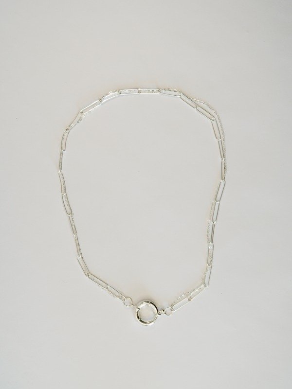 Collar realizado con doble cadena de acero blanco y cierre marinero.