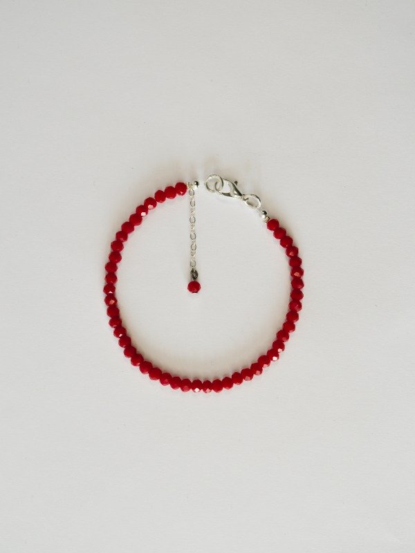 Pulsera realizada con cristal de roca facetada color rojo y cierre mosquetón.