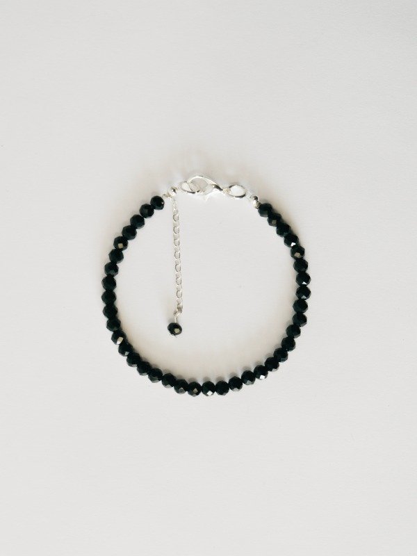 Pulsera realizada con cristal de roca facetada color negro y cierre mosquetón.