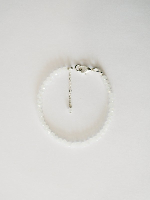 Pulsera realizada con cristal de roca facetada color blanco y cierre mosquetón.